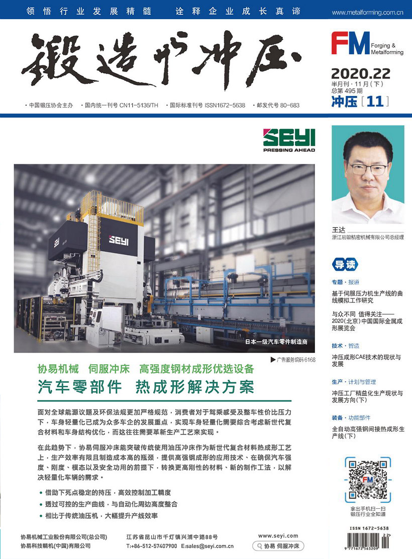 FM《鍛造與沖壓》由中國鍛壓協會主辦,是一本以市場需求為導向,集信息、技術、產品、市場與管理為一體的綜合性高端雜志。月發(fā)行量2.5萬冊,采取B2B發(fā)行模式,具有鍛壓行業(yè)針對性最強、覆蓋有效率最高的讀者群體,是中國鍛壓行業(yè)的領銜雜志媒體,受到國內外廣泛的認可。
