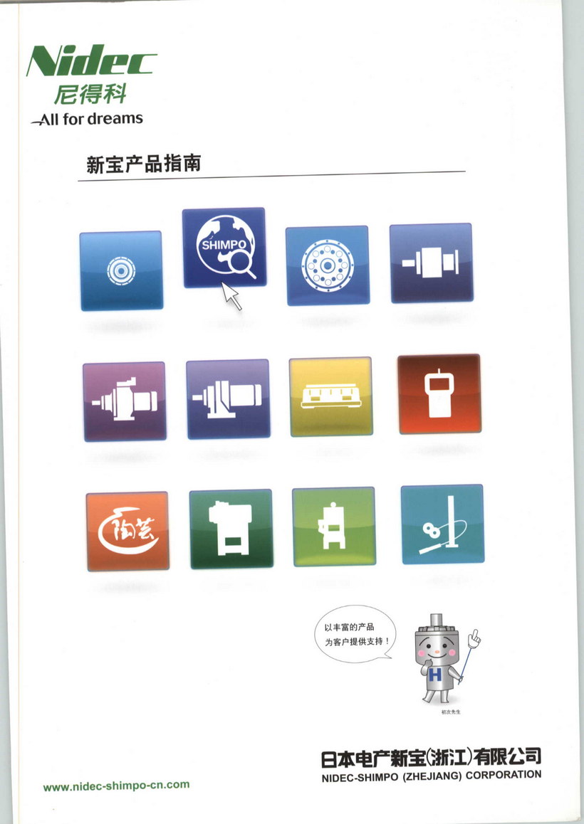 日本電產(chǎn)新寶株式會(huì)社是日本較早生產(chǎn)減速機(jī)、變速機(jī)的日資企業(yè),為日本電產(chǎn)集團(tuán)其中一員。2004年在中國(guó)浙江正式成立中國(guó)工場(chǎng)――日本電產(chǎn)新寶(浙江)有限公司。公司占地50000平方米,現(xiàn)有員工1300人左右。我公司的減速機(jī)品牌在中國(guó)主要是ABLE、可樂(lè)利。主要配套日系伺服電機(jī)(三菱電機(jī)、松下電機(jī)、安川、富士等各類(lèi)日系伺服)進(jìn)行使用。目前公司產(chǎn)品在日本的伺服電機(jī)配套用減速機(jī)市場(chǎng)保持著較高的占有率。目前中國(guó)國(guó)內(nèi)的客戶(hù)群也已經(jīng)擴(kuò)大并進(jìn)行販賣(mài)。我公司產(chǎn)品具有高精度、高靜音、低成本三大優(yōu)勢(shì),可用于機(jī)械手、商標(biāo)印刷機(jī)、彈簧機(jī)械、切割機(jī)等各行業(yè)。