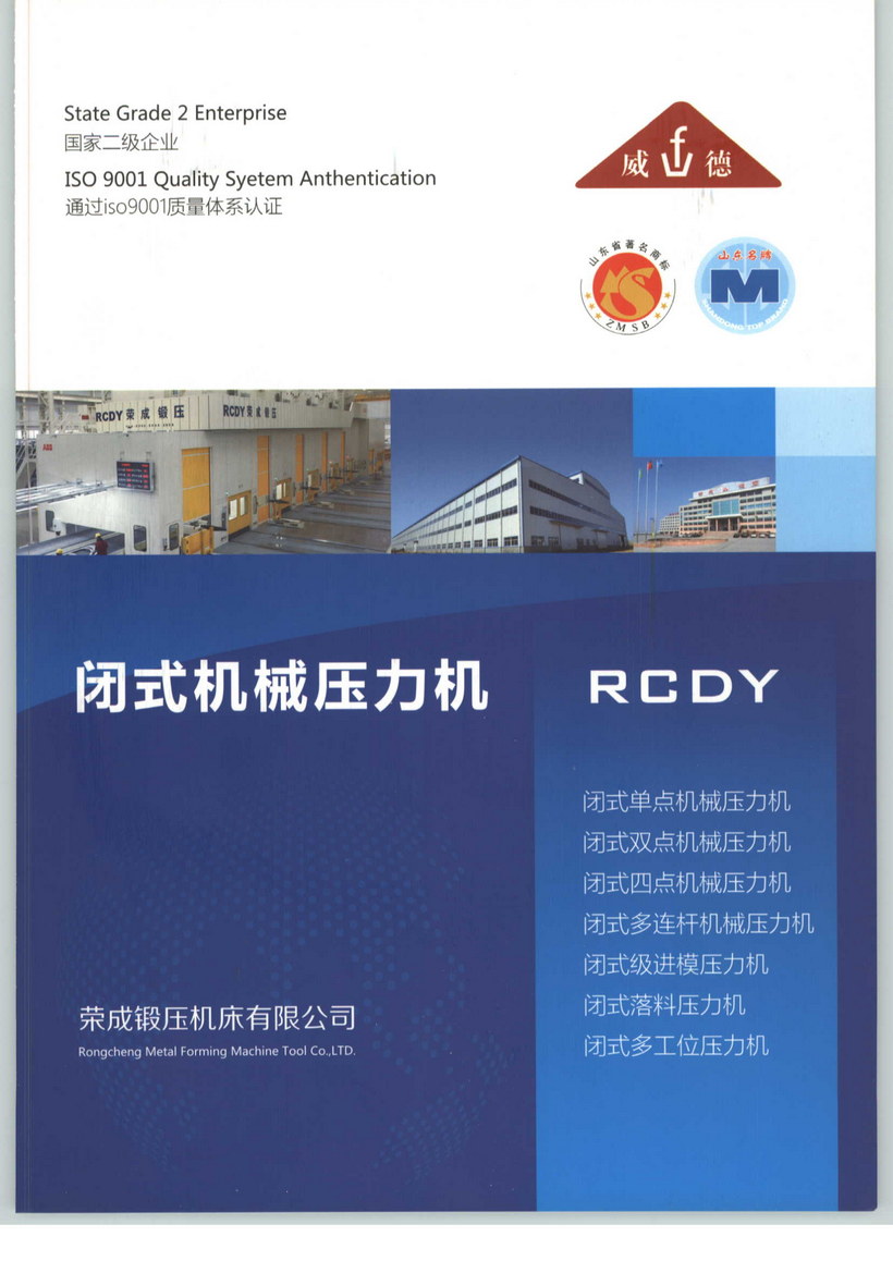 榮成鍛壓機床有限公司始建于1958年,是生產(chǎn)鍛壓設備的專業(yè)工廠,國家二級企業(yè)。工廠占地27萬平方米,其中廠房等建筑面積12.8萬平方米;共有員工1000余人,其中工程技術(shù)人員與質(zhì)量專業(yè)人員132人;擁有主要設備400余臺(套),其中精、大、稀設備60余臺(套)。公司于2000年即通過了質(zhì)量、職業(yè)健康安全和環(huán)境三大管理體系認證。連續(xù)27年被評為山東省“守合同、重信用”企業(yè)。公司先后被省市相關部門授予省級先進企業(yè)、山東省認定企業(yè)技術(shù)中心、山東省高新技術(shù)企業(yè)、山東省塑性成型加工機械工程技術(shù)研究中心、AAA標準化良好行為企業(yè)、省計量保證確認合格企業(yè)、威海市鍛壓機械工程技術(shù)研究中心、納稅先進企業(yè)、五星級職工之家等榮譽稱號,“威德”商標是山東省著名商標,“威德”牌壓力機是山東省名牌產(chǎn)品。公司現(xiàn)可生產(chǎn)開式全系列,閉式包括單點、雙點、四點、多連桿、多工位、級進模等8大系列300多個品種的鍛壓設備,技術(shù)水平都達到了當今國內(nèi)先進或領先水平,產(chǎn)品在國內(nèi)外市場享有盛譽。公司現(xiàn)為國內(nèi)主要鍛壓設備制造企業(yè)之一。