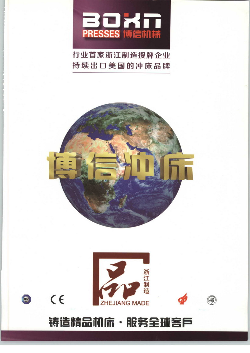寧波博信機(jī)械制造有限公司創(chuàng)立于2006年10月,是一家專業(yè)的高端沖壓裝備制造廠商。坐落在美麗的東方大港----寧波北侖春曉開發(fā)區(qū)。博信沖床秉承了國外成熟的工藝技術(shù)和先進(jìn)的設(shè)計(jì)理念,并經(jīng)過持續(xù)創(chuàng)新研發(fā),使產(chǎn)品的質(zhì)量、性能、聲譽(yù)在同行中處于領(lǐng)先地位。更于2012年開始與美國專業(yè)公司深度技術(shù)合作,使產(chǎn)品在設(shè)計(jì)、精度、性能、安全性等方面得到極大提升。目前已經(jīng)發(fā)明八十多項(xiàng)沖床專業(yè)方面的專利,且產(chǎn)品成為中國少有的持續(xù)銷往歐洲、美國等發(fā)達(dá)國家的品牌。