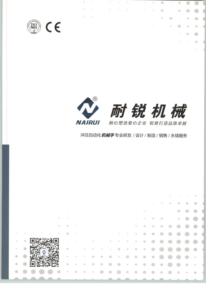 東莞市耐銳機(jī)械有限公司成立于2003年,公司廠房占地面積二十畝,擁有員工110余人,其中專業(yè)設(shè)計(jì)團(tuán)隊(duì)15人,半數(shù)擁有本科及以上學(xué)歷。是一家專業(yè)致力于沖床周邊自動(dòng)化設(shè)備的研發(fā)、生產(chǎn)、銷售企業(yè)。公司秉承著“耐心塑造愛(ài)心企業(yè),銳意打造卓越品質(zhì)”的企業(yè)宗旨和“篤守誠(chéng)信,銳意進(jìn)取,務(wù)實(shí)創(chuàng)新,專業(yè)服務(wù)”的企業(yè)精神,先進(jìn)的生產(chǎn)工藝,高效的管理控制,完善的品質(zhì)體系,周到完備的售后服務(wù),設(shè)計(jì)生產(chǎn)提供高速?zèng)_床周邊設(shè)備,品質(zhì)卓越,性能穩(wěn)定。通過(guò)多年的發(fā)展,公司已具備了專業(yè)化,規(guī)?;纳a(chǎn)能力。主要產(chǎn)品:二次元、三次元機(jī)械手、連桿機(jī)械手、獨(dú)立機(jī)械手、模內(nèi)機(jī)械手、拆垛機(jī)、高速滾輪送料機(jī)、新型高速夾式送料機(jī)、NCF滾輪送料機(jī)、精密整平機(jī)、三合一料架整平送料機(jī)、皮帶式高速齒輪更換式送料機(jī)及其它沖床周邊自動(dòng)化設(shè)備。