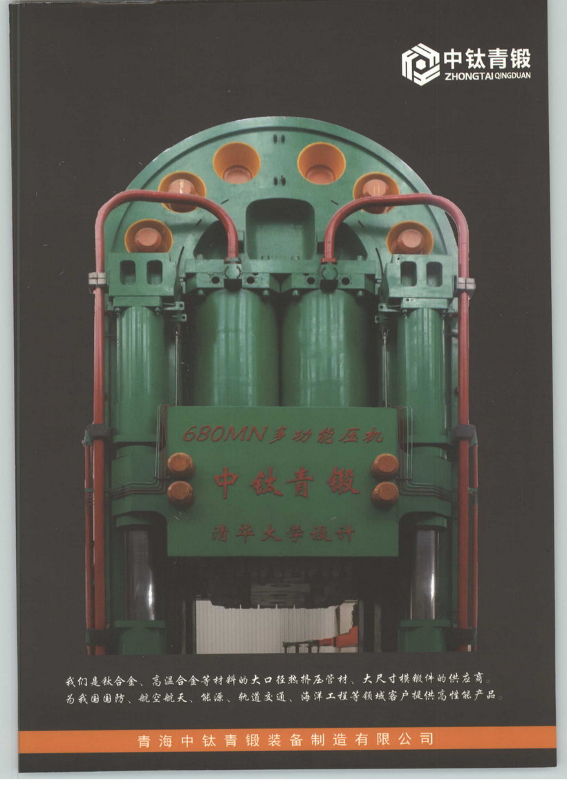 青海中鈦青鍛裝制造有限公司,位于海東市樂都工業(yè)園區(qū),占地面積27萬平方米,現(xiàn)有注冊(cè)資本10億元,總資產(chǎn)為14億元,現(xiàn)有員工200人,其中技術(shù)人員60人。中鈦青鍛具備獨(dú)立研發(fā)、生產(chǎn)大口徑管材、棒材及大尺寸模鍛件的能力,可熱擠壓直徑1500mm、長(zhǎng)度18m的各種規(guī)格鈦合金、高溫合金等新材料大口徑管材/大尺寸棒材和大尺寸模鍛件。擁有從開坯、鍛造、熱擠壓/模鍛到熱處理、加工、檢測(cè)等完整的加工生產(chǎn)能力,具備生產(chǎn)設(shè)備百余臺(tái)套。