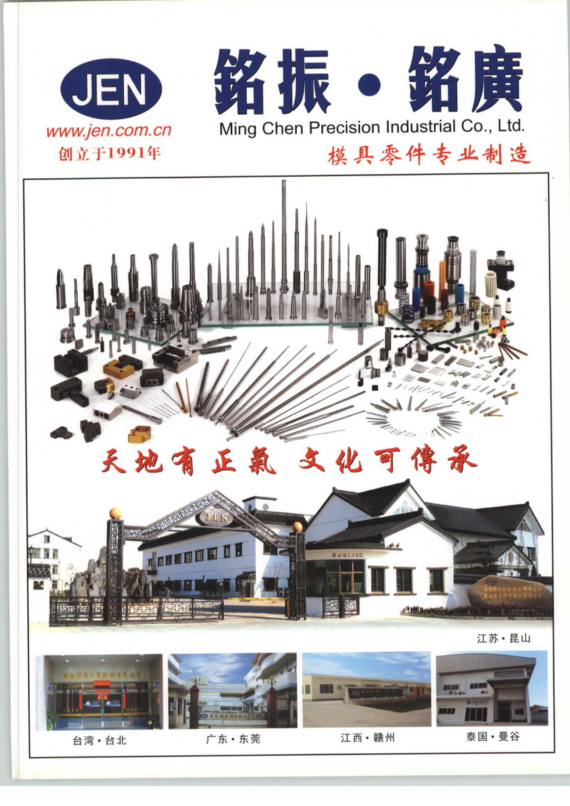銘振企業(yè)是一家集研發(fā)、生產(chǎn)、銷售、服務(wù)于一體的綜合性模具配件公司,企業(yè)擁有二十幾年模具配件生產(chǎn)及管理經(jīng)驗(yàn),有一支經(jīng)驗(yàn)豐富、技術(shù)精湛、凝聚力強(qiáng)的近千人隊(duì)伍。主營各類塑膠模、沖壓模標(biāo)準(zhǔn)和非標(biāo)零配件。銘振企業(yè)于1991年從臺(tái)灣創(chuàng)立發(fā)展至今在廣東東莞、江蘇昆山、江西贛州、泰國曼谷設(shè)有公司。企業(yè)從日本、美國、臺(tái)灣等地引進(jìn)加工設(shè)備,現(xiàn)有SEIBU、SODICK、FANUC精密慢走絲線切割機(jī),CNC高速加工中心,CNC精密車床,CNC精密車銑復(fù)合加工機(jī),數(shù)控深孔加工機(jī),EDM精密放電加工機(jī),無心研磨、頂心內(nèi)外研磨、精密平面成型研磨、自動(dòng)平面研磨、內(nèi)孔研磨、沖子研磨、真空熱處理、鹽浴氮化等精密設(shè)備。企業(yè)現(xiàn)有日本、瑞士等地精密檢測(cè)儀器,如Trimos高度儀,三豐工具顯微鏡,尼康投影儀,真圓度測(cè)量儀,表面粗糙儀,洛氏、維氏硬度儀等。企業(yè)產(chǎn)品有塑膠模(化妝品類、醫(yī)療用品類、消費(fèi)電子產(chǎn)品類等)、沖壓模具、橡塑模具、汽車模具等各類標(biāo)準(zhǔn)零配件及非標(biāo)準(zhǔn)零配件,客制化產(chǎn)品,自動(dòng)化設(shè)備組件,工裝夾具等。銘振企業(yè)將以更專業(yè)的技術(shù)與更精密的設(shè)備,為客戶提供優(yōu)質(zhì)產(chǎn)品與服務(wù)。