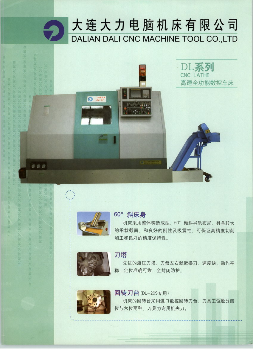 大連機床集團中國企業(yè)的500強之一,中國機械工業(yè)核心競爭力20強,大型工業(yè)企業(yè)500強,中國機床工具銷售收入連續(xù)五年第一,中國機械工業(yè)100強,機床工業(yè)首位,中國名優(yōu)產(chǎn)品售后服務(wù)十佳企業(yè)。數(shù)字說明一切?。?作為大連機床集團的一個分公司,大連大力電腦機床有限公司, 它與臺灣亨德集團于1993年共同投資一千萬美元創(chuàng)建的。主要產(chǎn)品數(shù)控車床都通過了ISO9001:2000質(zhì)量認證,其技術(shù)性能達到了當代國際先進水平,完全可以代替同類進口產(chǎn)品。本公司產(chǎn)品已廣泛用于機械加工中軸類和盤類零件的車削加工,并深得用戶的好評,目前除在國內(nèi)市場銷售外還批量出口到韓國,意大利等國家。 最后,我們相信,高質(zhì)量的產(chǎn)品會讓上帝用的舒心,三年的免費的卻優(yōu)秀的售后服務(wù)能讓你用的放心!!