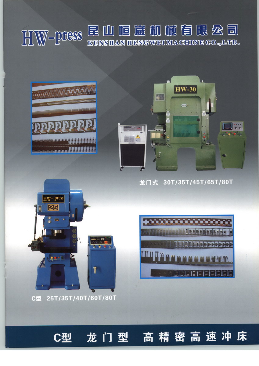 昆山恒崴機械有限公司經(jīng)過多年的拼搏發(fā)展,現(xiàn)已擁有現(xiàn)代化生產(chǎn)設備和國際一流的技術力量,是一家集研發(fā)、制造、銷售、安裝、維修服務于一體的沖床生產(chǎn)商,主要生產(chǎn)C型沖床、H型沖床、高精密強力鋼架沖床、超高精密肘節(jié)式?jīng)_床,公司可按客戶需要設計制造沖床周邊設備,可完成從工藝流程、設備選型、生產(chǎn)制造、安裝調(diào)試、人員培訓等一條龍服務。為滿足客戶所需,公司目前擁有江蘇、浙江、東莞等幾大生產(chǎn)基地,辦事處遍布全國,產(chǎn)品并且遠銷海內(nèi)外市場。